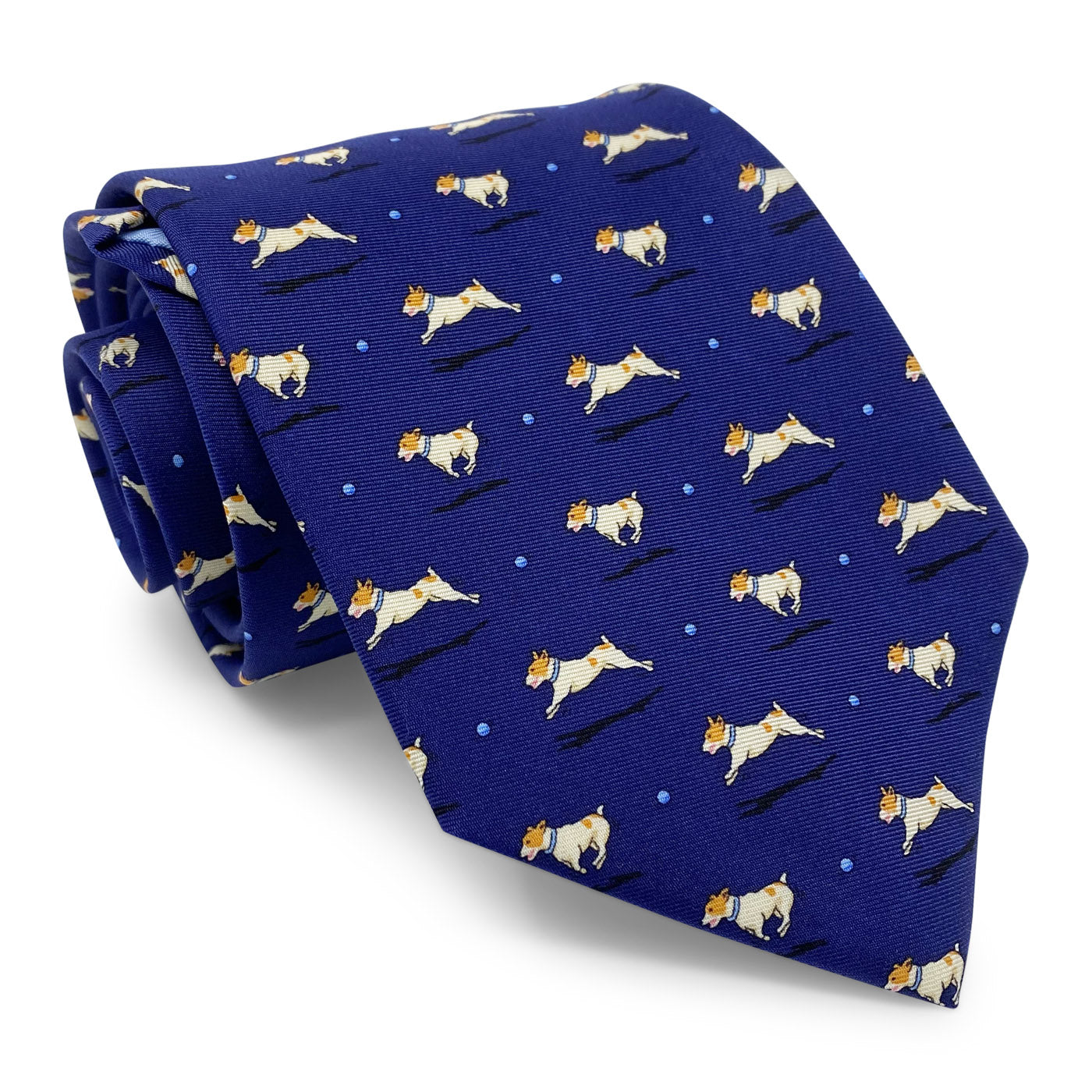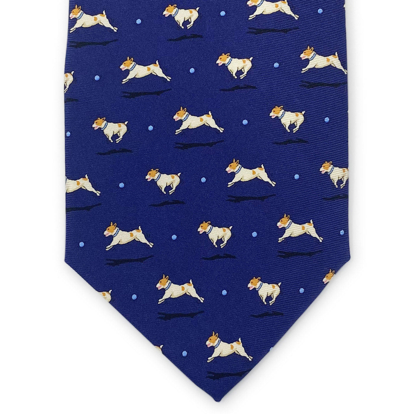 Our new dog tie is quite fetching with these spastic little Jack Russells forever engrossed in playing a game of ball-chasing.